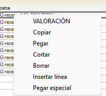 1-Selecciona la receta o recetas que quiera y pulsa el botón que tiene una doble flecha azul: o bien el botón derecho del ratón y aparece este menú: