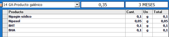cuadro de texto cantidad total, en 0,35 g hay 0,1 g de Nipagin). También