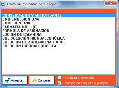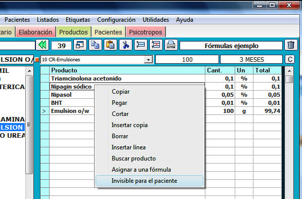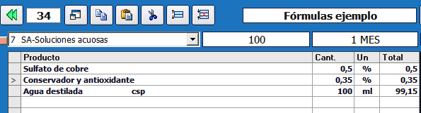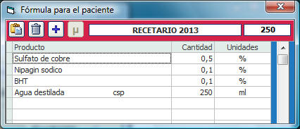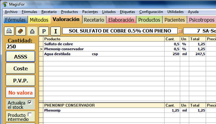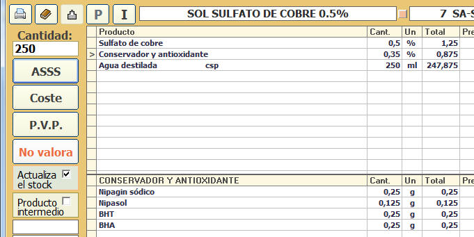 Después de guardar esta fórmula valorada en el RECETARIO,
