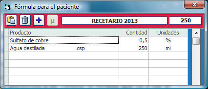 fórmula en el recetario, ha de pulsar el botón F2 que se