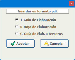 Botón G para guardar la Guía de elaboración desde el RECETARIO: