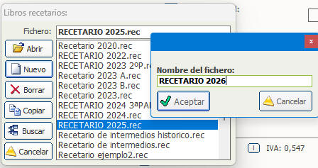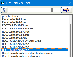 nuevo Recetario 2026 y pulsar el botón que tiene una flecha de color
