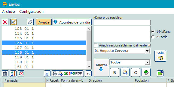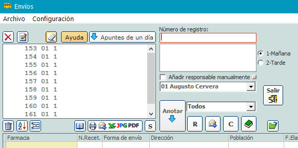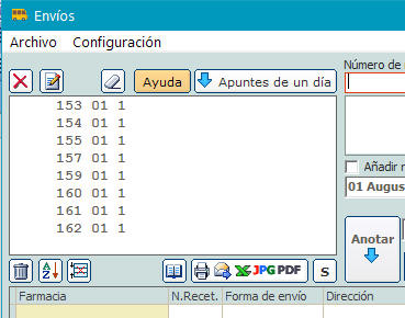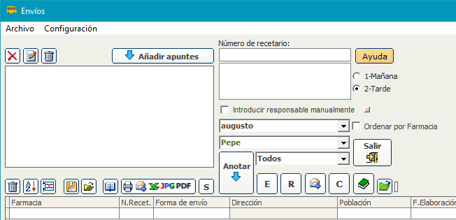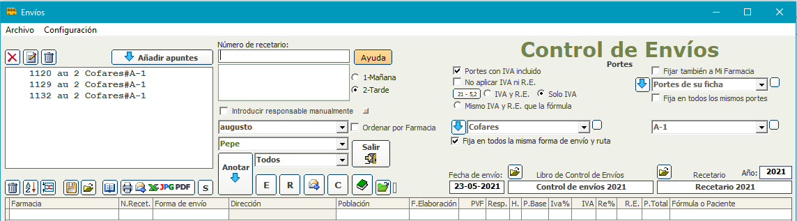 Envíos, basta con que en el RECETARIO haga clic en el tip "Enviado".