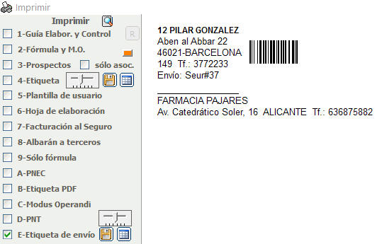 portes. Si más tarde esa misma farmacia le encarga otra fórmula y el