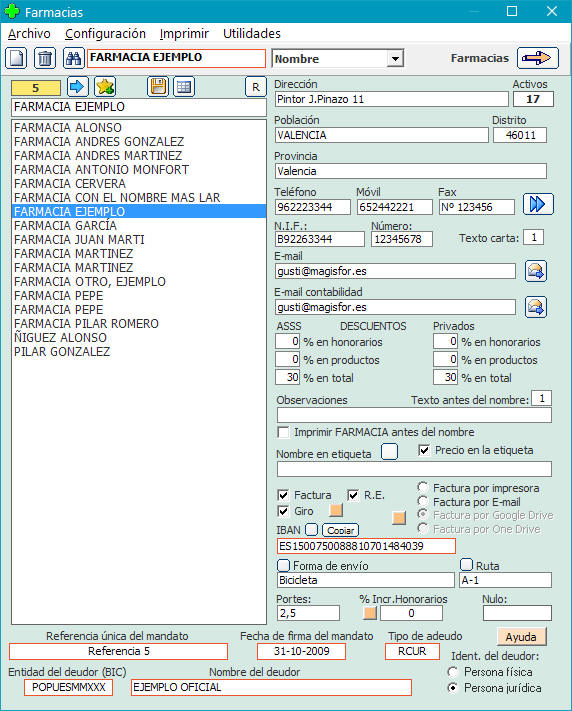 en la ficha de la farmacia. Algunas farmacias utilizan Forma de