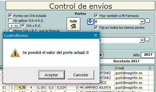 Control de Envíos Magisfor le añadirá unos portes porque en los